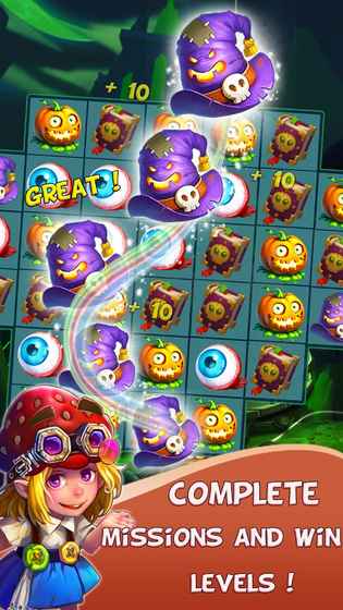 《万圣节巫婆》不仅提供了经典的消除玩法,还融入了丰富的剧情任务与趣味关卡。玩家将扮演一位小巫婆,在万圣节的魔法世界中完成各种挑战。游戏中的道具系统极具创意,例如魔法扫帚可以清除整行障碍,南瓜炸弹能炸开大片区域,为消除增添策略性。随着关卡推进,难度逐渐提升,玩家需要灵活运用道具与技巧,才能顺利通关。此外,游戏还加入了节日限定的特殊活动,让玩家在享受消除乐趣的同时,感受浓厚的万圣节氛围。