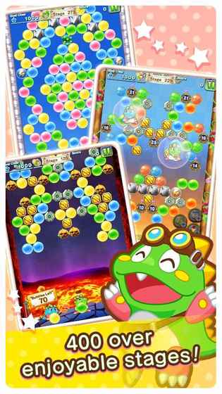 射出泡泡,并使三个及以上的泡泡挨在一起,促使他们爆炸。在每一个阶段完成您的任务,如"达到目标分数!""炸掉所有的泡沫!"和"限定步数!"!通关关卡解锁新关卡。不断前行!熟练使用各种道具和人物,以高效快速的通关!游戏中包括270个关卡!移动端版本中添加了很多新内容,比如简单模式,以及付费开启270关之后的内容。游戏还特别设计了每日挑战任务,完成可获得丰厚奖励,让玩家每天都有新的游戏动力。