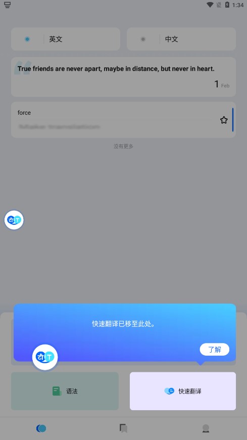 跨应用程序翻译功能通过浮动球的设计,让用户在任何应用程序中都能快速调用翻译服务。无论是阅读外文文章还是与外国朋友聊天,用户都可以随时翻译内容,真正做到聊天无国界,阅读无障碍。