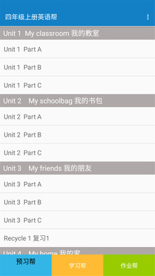 软件收录了小学英语四年级上册所有课文和单词的翻译、朗读,单词朗读提供纯英文和双语对照两种模式,满足不同学习需求。所有英语课文单词都配有智能评测系统,可实时检测发音准确度。高清全彩电子书支持点读、连读功能,所有英文内容均配有中文翻译和例句解析。专业教师录制的视频课程深入浅出讲解知识点。同步练习题库覆盖所有考点,词句宝库分类整理重点词汇,单词听写功能可自定义难度。独创的指定朗读功能让学生可以自由组合学习内容。寓教于乐的教学游戏将知识点融入趣味互动中,大大提升学习兴趣。