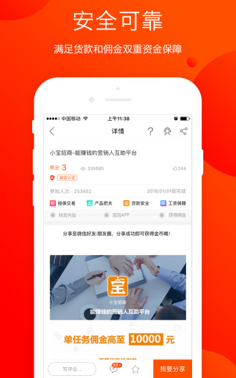 总的来说,《小宝招商》通过持续的功能迭代和体验优化,为销售人员提供了一个专业、安全、高效的兼职平台。无论你是想利用业余时间增加收入,还是希望拓展销售渠道,这款软件都能为你提供全方位的支持和服务。