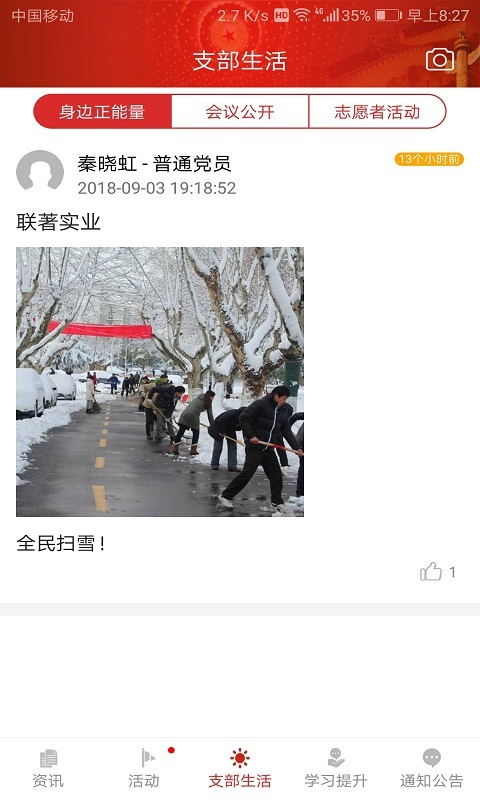 资讯板块新增了中央政策解读专栏,用户可以第一时间了解中央省市重要动态,同时优化了本地特色频道的展示方式,老党员讲故事、重温入党仪式、党建微课等内容更加丰富生动。活动功能全面升级,支持高清视频会议和实时互动,会议记录自动生成结构化纪要,投票和签到功能响应速度提升50%,志愿者活动管理新增GPS定位和照片上传功能。支部生活模块强化了互动性,支部成员可以点赞评论,党务公开内容支持按时间轴浏览。学习提升模块新增智能题库和错题本功能,考核成绩分析更加细致。通知公告板块增加了紧急消息提醒功能,确保重要通知及时传达。