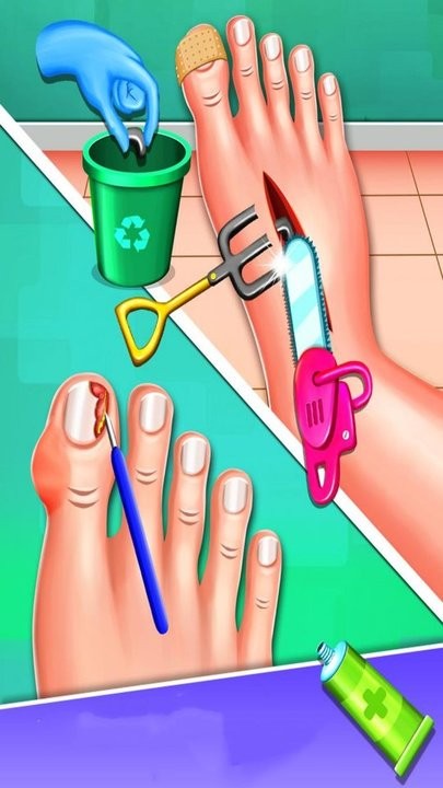 游戏提供了丰富多样的专业工具选择,从基础的指甲钳到专业的骨科器械一应俱全,让玩家可以自由选择最适合的治疗方案。简单直观的操作方式让新手也能快速上手,而随着游戏进程的深入,玩家将解锁更多高级工具和技巧。轻松愉快的游戏氛围配合精致的画面表现,为玩家打造了一个完美的减压空间。在这里,你不仅能享受修脚的乐趣,还能通过不断提升技能来服务更多不同类型的顾客。