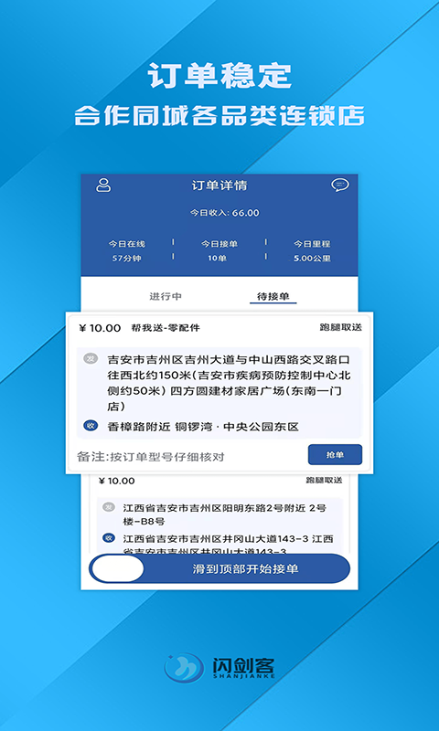 订单稳定性是闪剑客服务端的另一大优势。平台与同城各品类连锁店建立了长期稳定的合作关系,确保订单来源充足。系统智能匹配订单,让您的工作效率最大化。