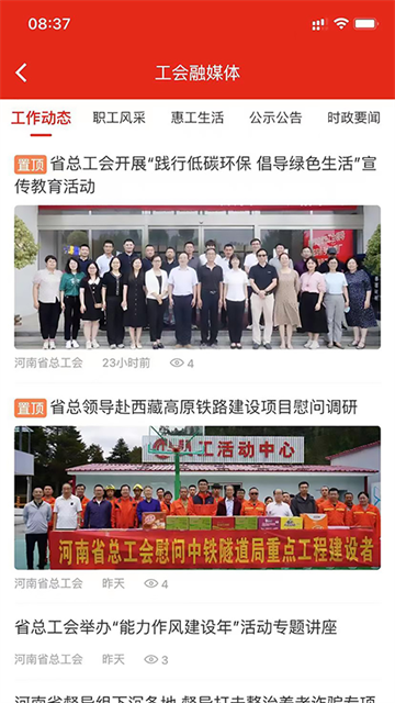 平台提供全方位的工会资讯服务,包括文体活动信息、组织建设动态、最新政策宣传等内容实时更新;让会员能够第一时间了解领导讲话精神、基层工作动态,以及精准帮扶等惠民政策;同时整合了各级工会信息,从省级到县区再到基层的动态,让职工通过手机就能掌握最新资讯。