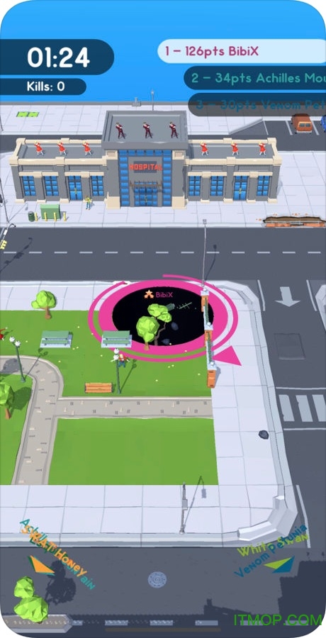 Hole.io是一款极具创意的休闲竞技手游,其核心玩法与球球大作战类似但更具视觉冲击力。游戏采用独特的城市吞噬设定,玩家控制的黑洞可以吞噬整栋大楼、公交车等大型物体。随着吞噬物体增多,黑洞会不断膨胀,最终甚至能吞噬半个城市。游戏支持多人在线对战,最多可容纳12名玩家同场竞技。每局游戏都充满变数,小黑洞逆袭大黑洞的精彩场面时有发生。
