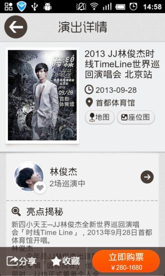 演出罗盘功能让您通过趣味互动发现最热门的演出资讯,只需轻轻转动,精彩演出即刻呈现;海量演出资源库囊括最火爆的演唱会、最新潮的话剧等各类精彩演出;巡演追踪功能让您对明星的巡演行程了如指掌;个性化订阅服务让您收藏喜爱的演出和明星,随时获取最新动态;全场包邮服务确保您购买到正品门票,享受全国包邮的便利;会员和绿钻用户更可独享购票5%Q币返利等专属优惠。