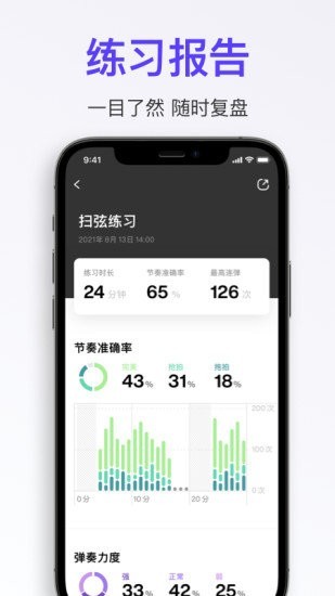 平台提供智能化的数据分析功能,通过精准记录你的每一次练习,生成详细的弹奏数据报表。这些数据包括指法准确度、节奏稳定性、练习时长等多个维度,让你对自己的演奏水平有更清晰的认知。系统还会根据你的练习情况给出个性化建议,帮助你更有针对性地提升技巧,就像一位24小时在线的智能吉他导师。