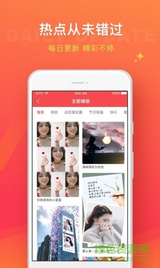 一键技术流让你轻松火!平台收录了当下最流行的视频特效和转场效果,包括电影级调色、动态文字等。不必费力学习复杂的视频制作,原创系列模版惊喜不断,每周更新50+创意模板。你也能成为主角,做出令人赞叹的创意视频!系统还会根据节日和热点事件,推荐最适合的创意方案。