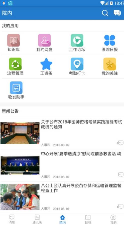 可以查阅内部知识库的文档和多媒体文件,查看医院日报,个人工资条,个人,工作论坛、新闻公告等内容,打造一站式信息获取平台。