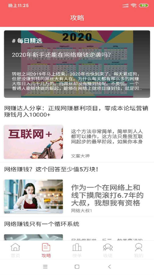 首页精心设计了热门推荐板块,特别适合上班族在业余时间赚取外快。这里不仅有详细的兼职项目介绍,还会提供专业的赚钱技巧指导。第二页是网赚技巧专区,汇集了各类实用的网络赚钱方法,从基础入门到进阶操作应有尽有。无论你是刚接触网赚的新手,还是有一定经验的老手,都能在这里找到适合自己的赚钱门路。