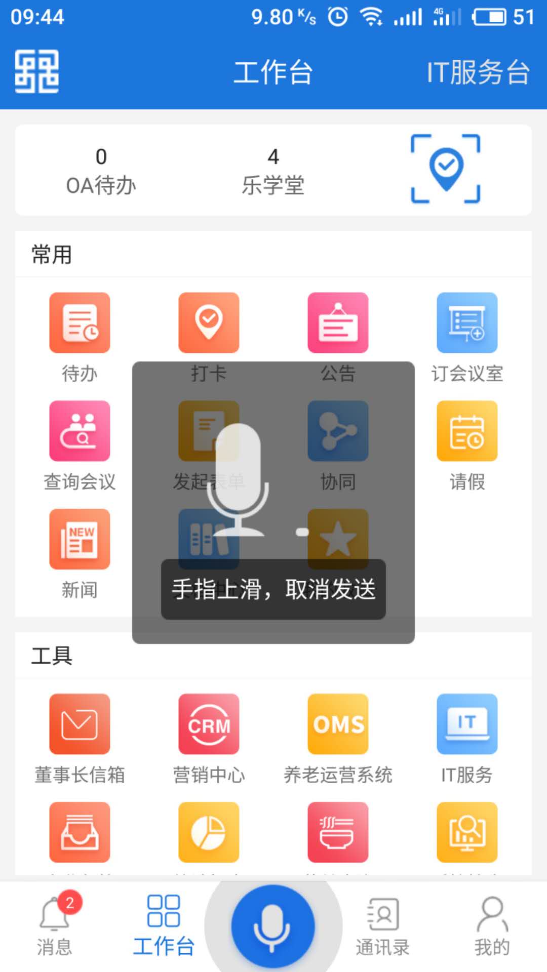 员工工作台:包含运营系统、IT服务、物业服务、菜谱、OA等诸多常用工具,随时随地掌上办公。开放API接口支持第三方应用接入,个性化Widget让高频功能触手可及,真正实现移动办公全场景覆盖。