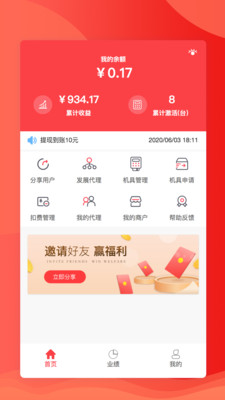 我的代理:查看我的代理业绩及机具情况,可生成多维度可视化分析报表;