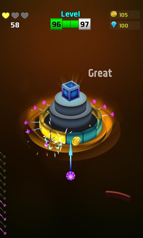 《投掷飞针》(《PinVSColor》)为玩家呈现了一个充满挑战的物理射击世界。游戏中,你需要精准控制飞针的发射时机和角度,将它们巧妙地插入不断旋转的彩色球体缝隙中。随着游戏进程推进,目标球体的旋转速度会逐渐加快,形状也会变得更加复杂,考验玩家的反应速度和空间判断能力。游戏精心设计了上千个关卡,每个关卡都隐藏着独特的宝藏等待发掘,让你在突破自我的同时收获满满的成就感。