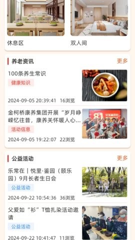 养老资讯:通过阅读各类优质资讯,涵盖健康养生、政策解读、文娱活动等多个方面,帮助用户掌握最新的养老相关信息,平台内容由专业团队定期更新维护。
