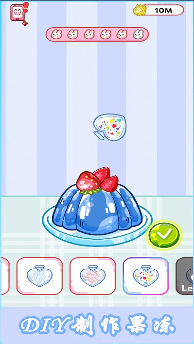 游戏的玩法简单有趣,小朋友首先需要选择喜欢的原料,调配出理想的颜色,然后通过制冷脱模等步骤完成果冻制作,最后用新鲜水果进行装饰点缀。制作完成后,就可以开启吃播直播,向观众展示自己的作品,在享受美食的同时收集弹幕点赞与金币奖励。随着游戏的深入,小朋友还可以拓展经营内容,比如去超市采购更多食材,为森林里的小动物们制作美味奶茶,这些都能带来额外的收益,让经营体验更加丰富多彩。