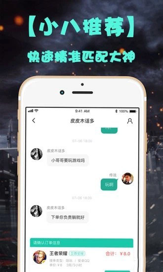 小八电竞是一款专注于游戏社交的移动端陪玩app,致力于为用户打造轻松愉快的游戏环境。在这里,你可以通过语音交流、游戏互动结识有趣的伙伴,体验并肩作战的乐趣。平台汇聚了各类游戏高手,无论是竞技对战还是休闲娱乐,都能找到合适的玩伴。特别值得一提的是,小八电竞还提供多种声线选择,从低音炮到萝莉音,满足不同用户的听觉偏好,让游戏过程更加丰富多彩。