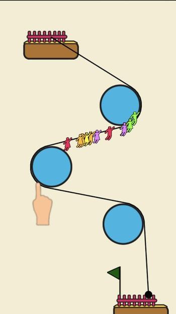 救小人的时间是没有限制的不过还是要快,玩家可以自由安排救援节奏,但快速完成关卡会获得更高的评分奖励。游戏不仅有小人和绳子的出现还有各种蓝色圆圈出现,这些圆圈是救援过程中的关键道具,能够帮助玩家更高效地完成任务。出现的圆圈是可以让绳子伸缩的更高的解救小人,玩家需要巧妙利用圆圈的移动和位置变化,才能顺利将小人安全送达地面。