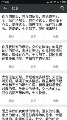 支持生日祝福、日常祝福、爱情祝福等多种场景,短信祝福内容支持一键复制分享。应用还会根据用户的使用习惯,智能推荐最合适的祝福语。