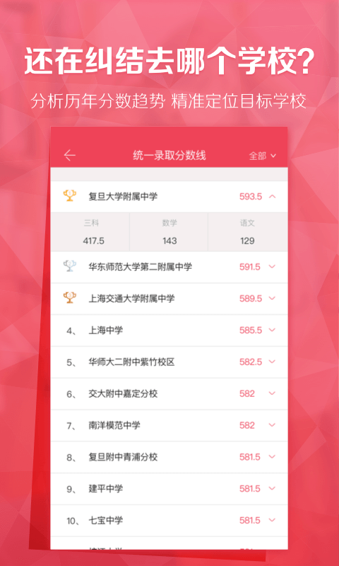 此外,app还提供部分地区重点高中历年录取分数线的查询服务,这些数据实时更新,让您随时掌握最新的招生动态,为升学规划提供可靠参考。