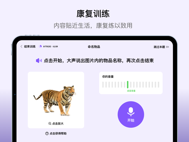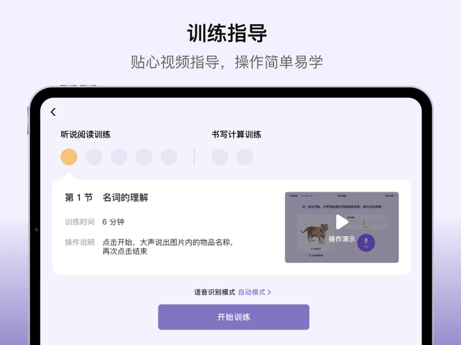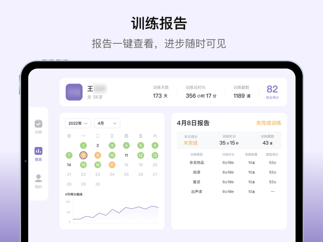 患者可以根据自身情况灵活安排每周训练时间,从基础的听说阅读训练到进阶的书写计算训练,软件都能提供科学的时间规划建议。软件支持自动训练和语音识别两种模式,用户可以根据实际需求自由切换,确保训练效果最大化。特别设计的图片放大功能让视觉训练更加清晰,遇到困难内容时可以选择跳过,系统会自动记录训练时长和进度,帮助用户更好地掌握康复节奏。