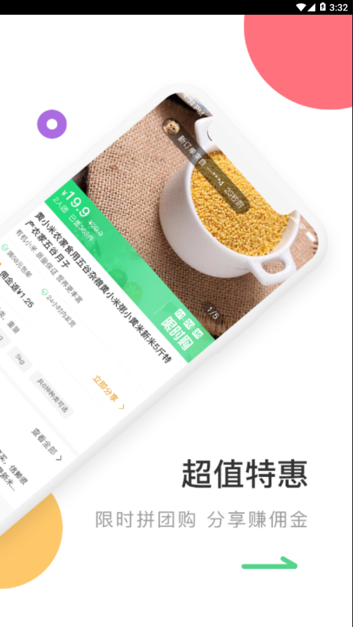 限时拼团购:邀请好友一起拼团,享受更低价格,分享还能赚取佣金