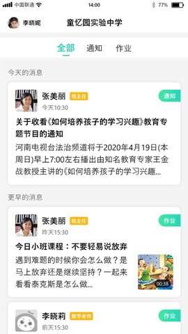 童憶園中小學的智能考勤系统会自动记录学生刷卡进出校园的信息,生成详细的考勤报告,大大减轻了教师的工作负担。作业管理功能让家长可以随时查看孩子的作业完成情况,及时提醒孩子巩固课堂知识,并提供专业的学习指导建议。此外,软件还集成了校园通知系统,无论是缴费提醒、假期安排还是重要活动通知,家长都能第一时间在应用内获取最新信息,确保不会错过任何重要事项。