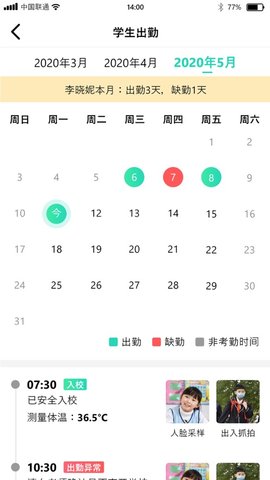 多终端无缝协作是童憶園中小學的一大特色,支持手机、平板和PC端同步使用,所有数据实时更新,让您随时随地都能查看孩子的学习进度。系统智能记录亲子视频观看情况,这些精心挑选的英语课堂实录视频,能帮助家长更好地了解孩子的课堂表现。在考勤管理方面,软件采用直观的彩色标记系统,不同颜色的出席标识让家长和教师能够快速分析学生的出勤状况,及时发现异常情况。