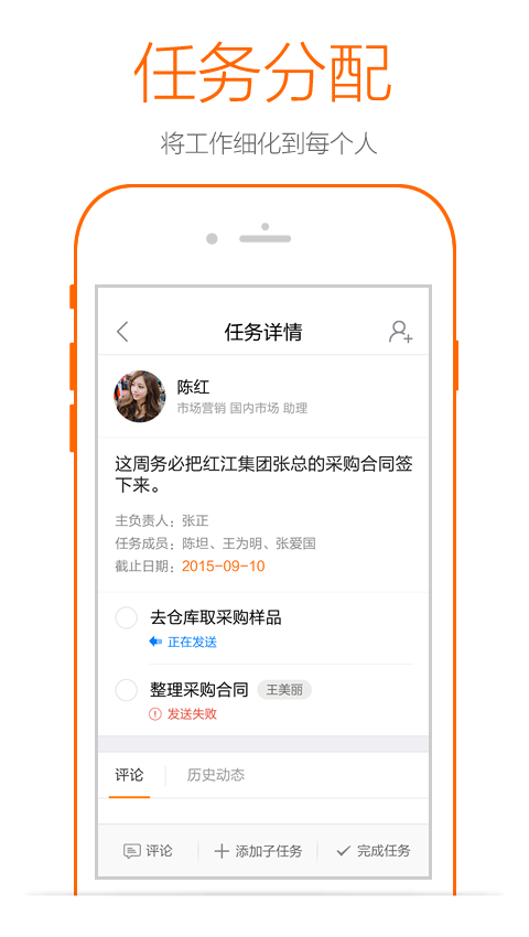 任务分配功能可将复杂项目拆解为具体任务,精确指派到每位员工,并实时追踪完成进度,确保工作高效执行。