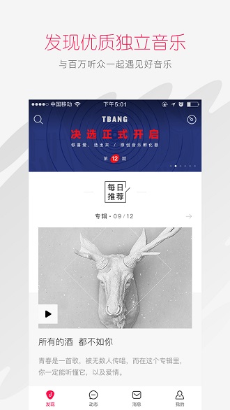 发现优质独立音乐,与百万听众一起遇见好音乐,构建活跃的音乐分享社区。