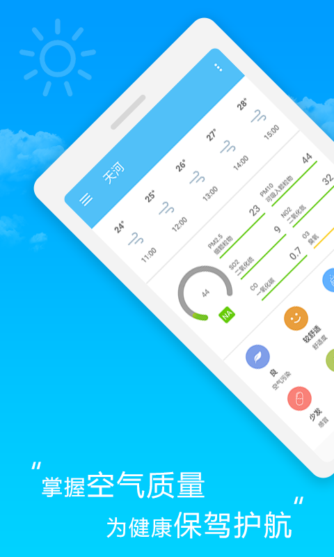 天文气象信息:动态展示日出日落时间,结合空气质量、风力、风速等关键指标,为户外活动提供科学参考。