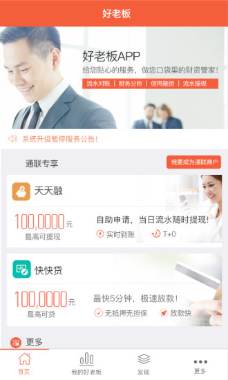 "好老板"由通联支付精心打造,是一款专注于商户服务的移动端应用程序。它不仅提供基础的流水对账和账务管理功能,更通过深度数据分析帮助商户洞察经营状况,同时提供便捷的信用融资服务。该软件建立了高效的商户-客户经理沟通机制,通过持续的服务优化和功能升级,不断提升商户使用体验和ARPU值。其响应式服务系统确保商户需求能够得到快速响应和解决,真正实现"商户至上"的服务理念。