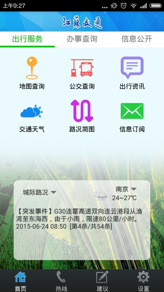 城际/城市路况功能是该应用的一大亮点,能够实时显示全省主要公路及南京、苏州等重点城市的交通拥堵状况。同时,系统会第一时间推送突发事件、道路施工等动态信息,帮助用户合理规划出行路线,避开拥堵路段。