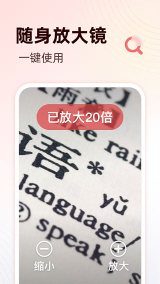 智能放大镜操作简单,支持一键快速放大功能,无论是查看菜单、地图还是其他细小文字,都能立即获得清晰放大的画面,使用体验流畅便捷。