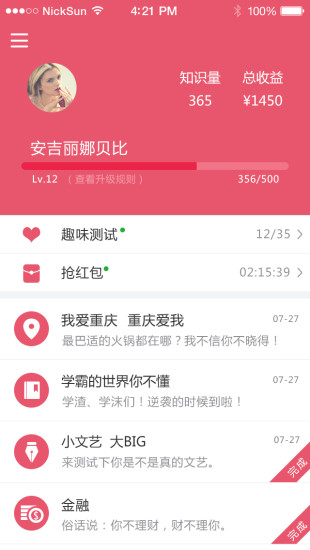 热门新闻,社会槽点,好玩的测试,这里应有尽有。加三不仅提供知识问答,还设置了各种趣味互动环节。你可以参与心理测试了解真实的自己,也可以在热点话题区发表独到见解,更有机会获得官方精选展示。平台定期举办答题大赛,丰厚奖品等你来拿。