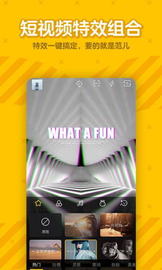 -短视频特效组合,滤镜、挂件、音乐等特效同时搞定,一键拍大片;新增AR场景识别功能,可根据拍摄环境智能推荐最佳特效方案