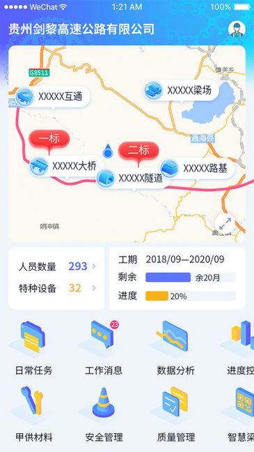 基础数据管理:实现各建设路段的项目、标段、桥梁、隧道等基础数据统一管理,支持数据批量导入导出,确保信息准确性和一致性。
