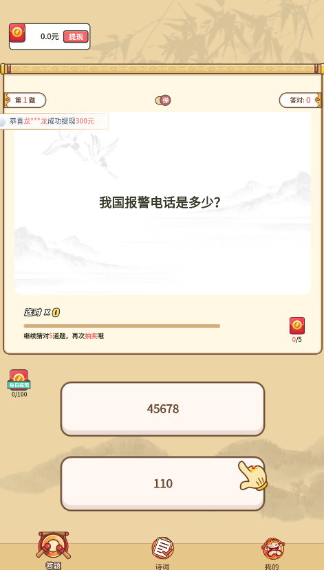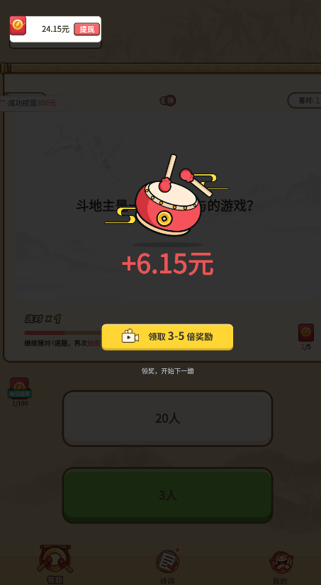 这款游戏最吸引人的地方在于其真实可靠的提现功能。玩家通过游戏获得的每一分钱都可以直接提现,真正做到零门槛、零套路。游戏设置了多种红包奖励机制,从几毛钱到几元不等,一元起即可提现到微信钱包。系统还会随机发放"恭喜发财"、"大吉大利"等祝福红包,让玩家在收获知识的同时也能获得意外惊喜。