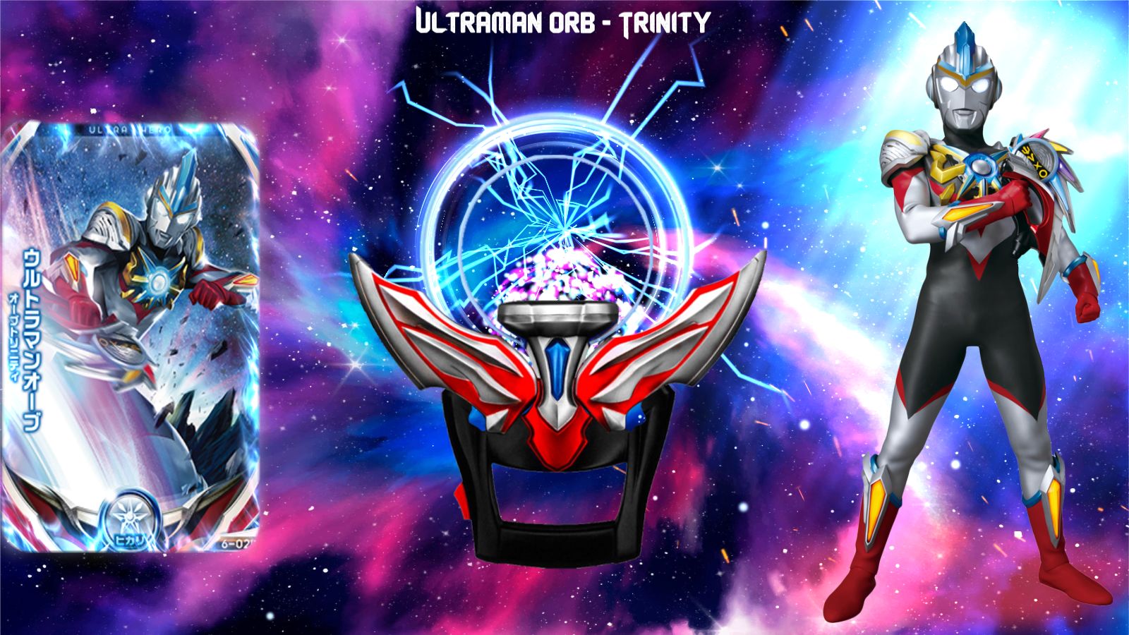 三个光之力,借用一下!连接着三个光与纽带,现在,立于此!欧布、银河和维克特利的完美融合。