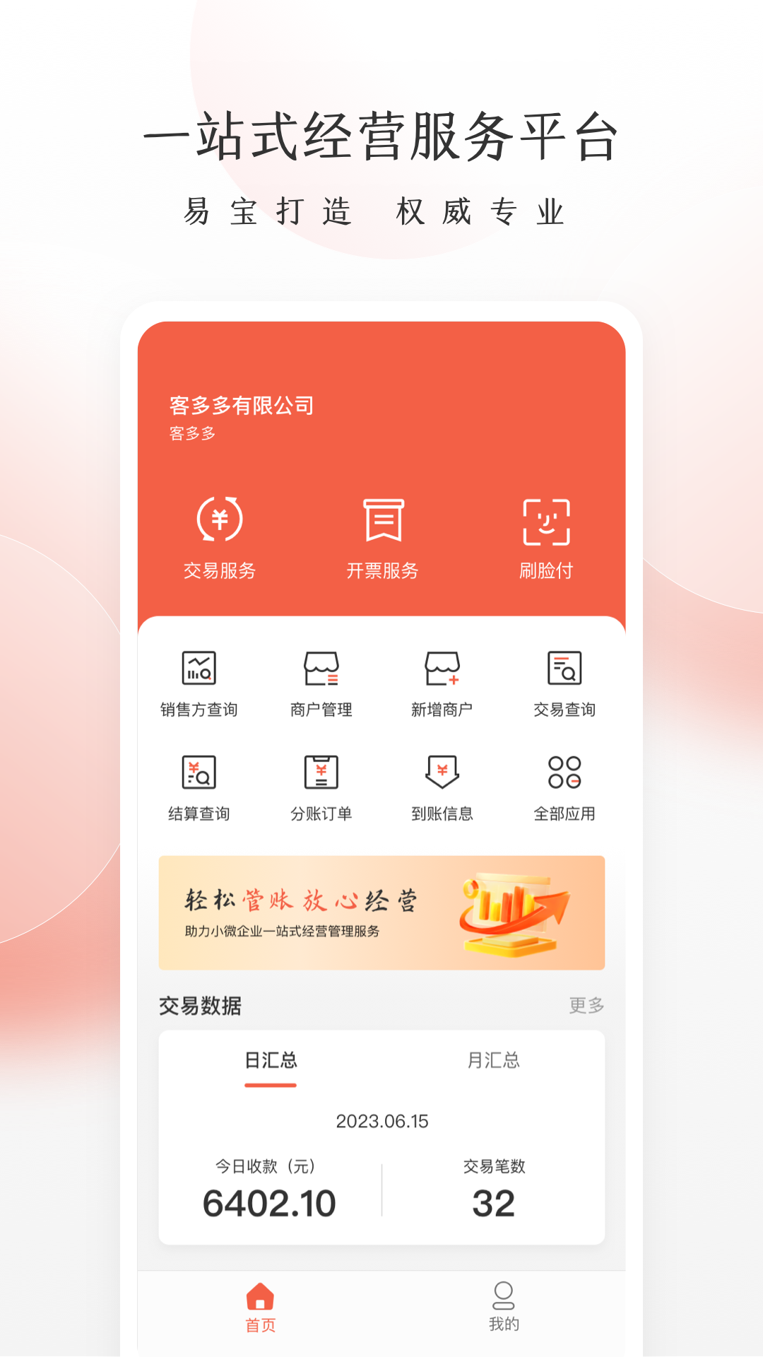 商户交易数据多维度汇总与查询,助力商户进行精细化经营分析,支持自定义时间段数据统计和对比分析。商户分账、结算、到账数据实时更新,订单明细、操作退款功能一应俱全,确保资金流转透明可追溯。为商户提供开票码和手工开票等多种发票开具方式,移动开票便捷轻松,支持电子发票一键发送至客户邮箱。提供商户查询、新增、签约等多种管理功能,实时掌握商户状态,支持多门店统一管理和权限分配。