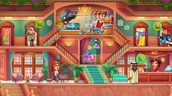 游戏采用色彩鲜明的美式卡通风格,每个角色都拥有夸张生动的表情和动作,为经营过程增添无限趣味。在酒店升级过程中,你需要同步培养员工团队,通过技能培训系统让服务员、厨师等岗位获得专业成长。随着剧情推进,完成特殊任务可解锁古董家具、泳池设施等稀有装饰,还能获得扩建许可证等珍贵奖励,逐步将小旅馆发展为跨国连锁酒店集团。
