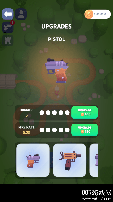 玩家可以通过游戏内的武器系统对枪支进行升级强化。首先,点击游戏界面左侧的手枪图标进入武器菜单,这里会展示所有可用的枪械类型。每种枪械都有独特的属性和升级路线,玩家可以根据自己的战斗风格选择合适的武器进行强化。选定想要升级的枪型后,点击绿色的升级按钮即可消耗游戏资源提升武器性能。随着武器等级的提升,其伤害、射速和特殊效果都会得到显著增强,帮助玩家更轻松地应对后期更强大的巨蛇敌人。
