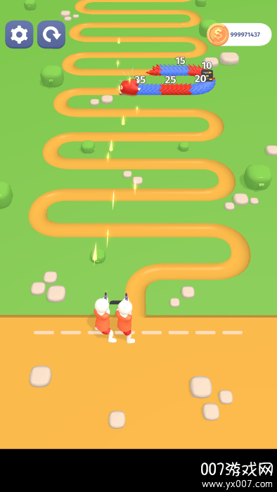 首先,玩家需要点击游戏底部的PLAY按钮进入游戏主界面。在游戏中,玩家可以通过虚拟圆盘控制角色的移动和射击方向,确保能够精准瞄准巨蛇的弱点。游戏的目标是成功消除巨蛇身上的所有数值,从而彻底击败它。在战斗过程中,巨蛇会随机掉落各种技能道具,玩家可以拾取这些道具来增强自身能力或削弱巨蛇。游戏的操作简单直观,即使是新手也能快速上手,但想要完全掌握战斗技巧,还需要不断练习和探索。