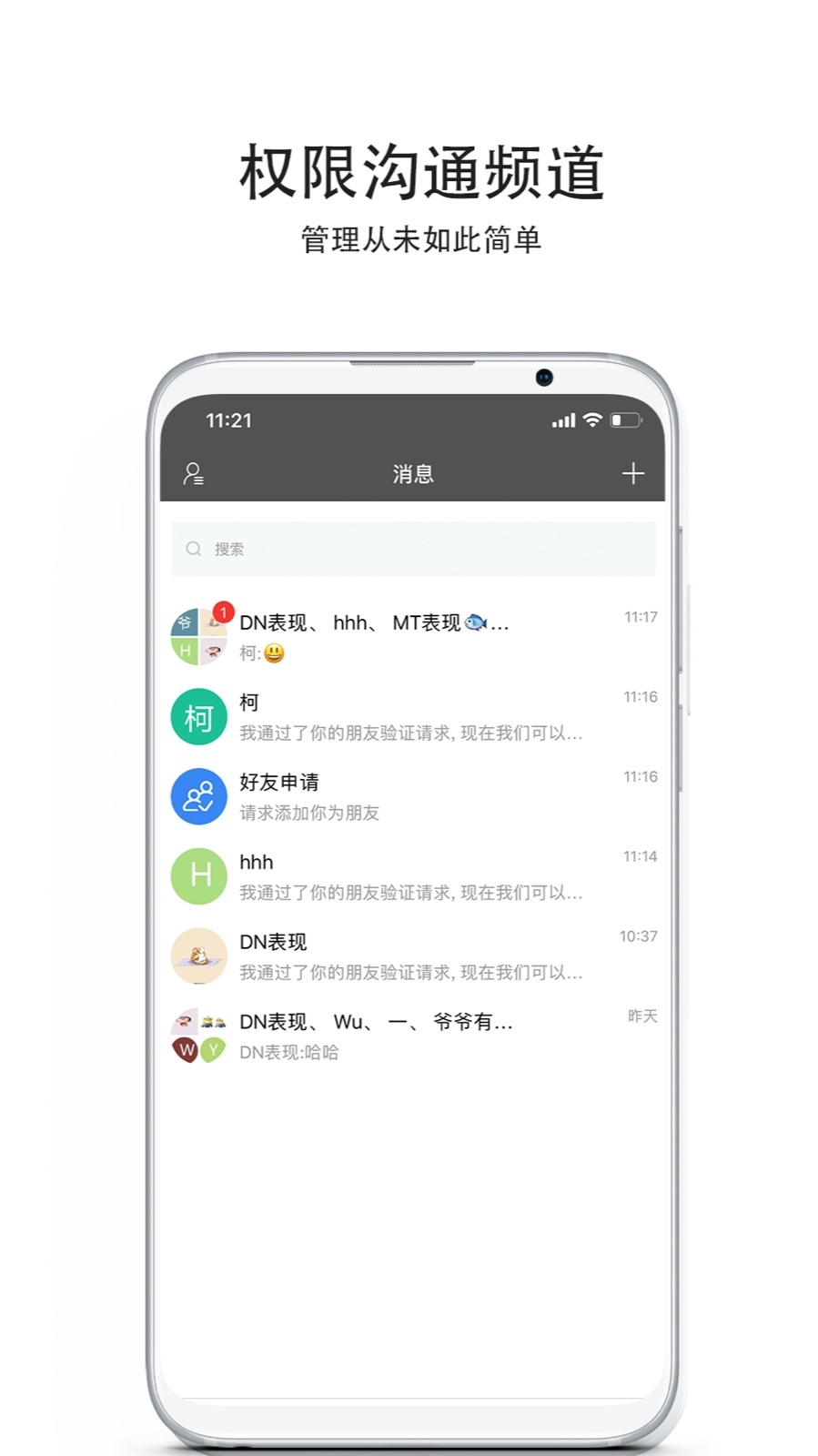 聊天通讯录功能将企业/团队组织架构、业务合作客户、个人好友列表清晰呈现,让用户能够一目了然地掌握所有联系人信息,随时随地快速找到需要联系的人员;合作伙伴模块支持跨企业/团队的实时业务协作和沟通,打破组织边界,让多方合作变得更加轻松便捷;沟通功能支持单聊、多聊、群聊等多种对话模式,同时提供文字、语音、图片、文件、地理位置等多种信息共享方式,全面满足工作沟通的各种需求。
