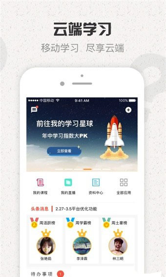 拥有美颜直播在线知识学习,让远程教学更具亲和力;通过同事圈子进行社交学习,轻松解决问题,促进知识共享;拥有课程中心,海量课程一网打尽,满足不同层次学习需求;为你提供轻松学习的愉快体验,让专业知识不再枯燥。平台还支持离线下载功能,随时随地都能学习,充分利用碎片化时间提升自我。