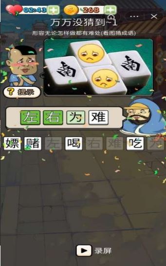 万万没猜到作为抖音平台的现象级游戏,凭借其独特的创意玩法迅速走红。游戏最大的特色在于将传统答题与网络流行文化巧妙结合,打造出既考验知识储备又充满娱乐性的闯关体验。诙谐幽默的游戏风格让玩家在解题过程中不断收获欢乐,而精心设计的成语关卡则让玩家在娱乐中学习传统文化知识。游戏还融入了大量时下流行的表情包和网络梗,让整个挑战过程充满惊喜。