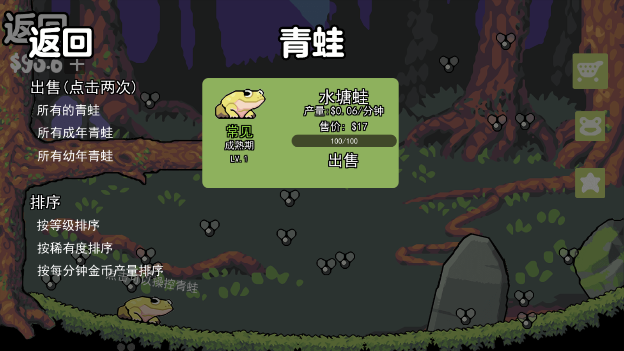 游戏的环境系统也是一大亮点,你需要根据青蛙的品种特性,为它们打造最适合的生存环境。这包括调节水温、控制湿度、布置合适的栖息地等。一个良好的环境不仅能提高青蛙的健康水平,还能促进它们的生长发育。随着养殖场规模的扩大,你还需要考虑如何合理规划空间,优化养殖流程,提高整体效率。这些经营策略的运用,将直接影响你的养殖场能否获得成功。