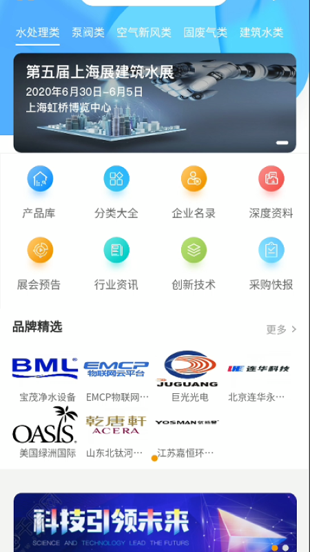 在产品数据库分类中可以选择各种不同的水处理和环保信息,涵盖设备、技术、案例等全方位内容。