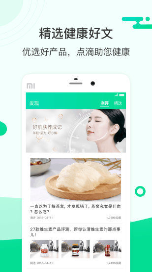 软件还具有精选健康文章的功能。您可以在软件中选择好的产品来帮助您保持健康;平台定期更新权威健康资讯,内容涵盖疾病预防、养生保健、营养饮食等多个领域,为用户提供科学可靠的健康知识。
