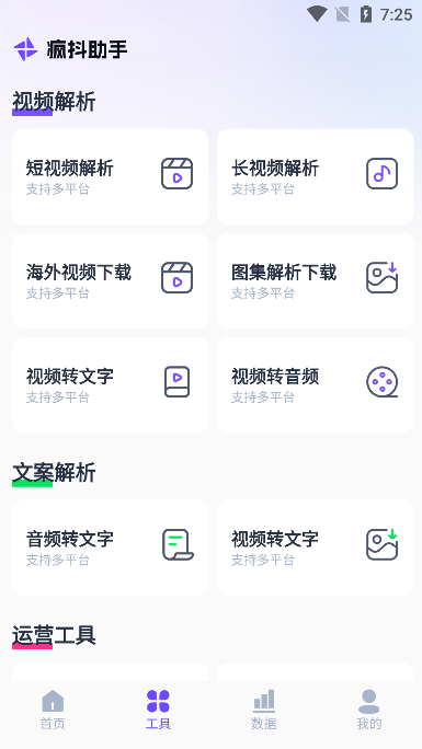 疯抖助手APP拥有多项独特的功能优势,使其成为短视频运营的必备工具。首先,APP提供了一键去水印功能,用户只需导入视频链接,即可快速去除水印,操作简单且效果出色。其次,无论是短视频还是长视频,疯抖助手都能高效解析,支持多种视频格式,满足用户对不同文件类型的处理需求。此外,APP还支持海外短视频的解析与下载,让用户可以轻松获取全球热门视频内容。疯抖助手还具备强大的数据分析能力,帮助用户深入了解视频平台的运营趋势,为内容创作提供有力支持。